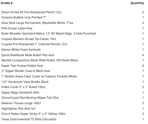 School Supply Kits